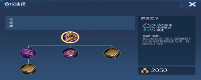 王者荣耀梦魇是指梦魇之牙。一般是法师用的一个装备,王者荣耀梦魇有一个特殊的被动技能-重伤,能使敌方英雄修复血条减半。当敌方的吸血能力及恢复力非常强的时候,法师就可以出一个梦魇,控制对面。唯一被动:重伤