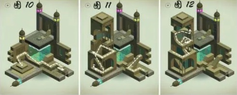 纪念碑谷第八关过关方式:第一节:箱子共有四个按钮分别代表不同空间,先点击右上的按钮,看到主人公,踩掉开关,第一个灯塔亮,进上边的门。按箱子上的按钮关闭盒子。开启左下按钮,进入第二个空间,等候秃鹫踩掉开
