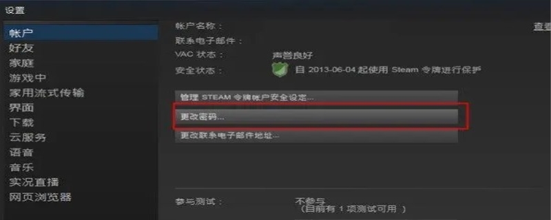改steam密码详细步骤:一、开启Steam主面板-看到左上方的steam。二、点击左键设置-账户-修改密码。三、出现"steam修改密码指导",并让你输入当前的密码,并点击“下一步”。四、steam