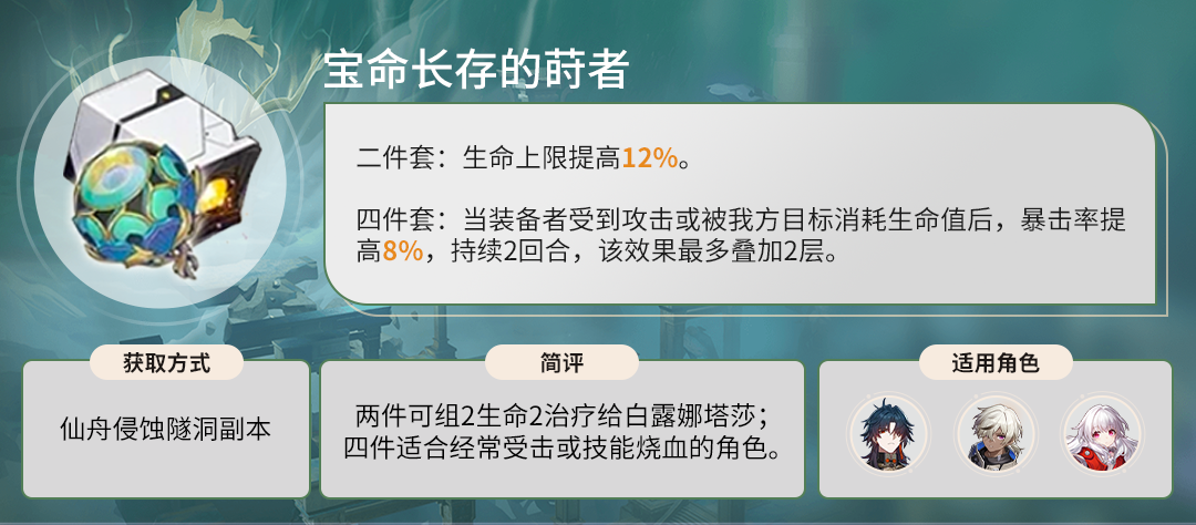 崩坏星穹铁道宝命长存的莳者搭配角色推荐?崩坏星穹铁道宝命长存的莳者给谁用合适是很多小伙伴们都会问到的问题,下面小编给大家整理出关于崩坏星穹铁道宝命长存的莳者搭配角色推荐的相关内容