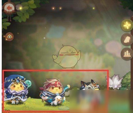 打开如下图所示的界面,在冒险界面中点击左下角红框中的咔叽们,就可以进入调整队伍的界面了。在这里点击蓝色的框可以更换上阵的咔叽,而队长咔叽的头上会有一个明显的小皇冠,你可以点击小皇冠来调整队长是哪一只咔