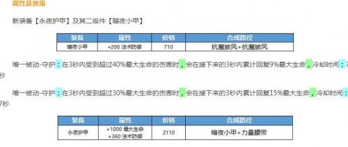 王者荣耀永夜护甲属性是什么?首先,该款装备一旦装备,那么就能获得1000点最大生命值以及360点法术防御,提供对魔法伤害更好的抵抗性。同时,被动上为守护,效果是作战阶段在3秒内受到超过30%最大生命的